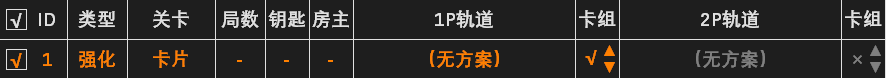 - 点击1P轨道下方的“无方案”,打开“轨道强化系统”面板。在“使用方案”处选择需要使用的强化方案,或点击“新建方案”按钮创建新的方案。
